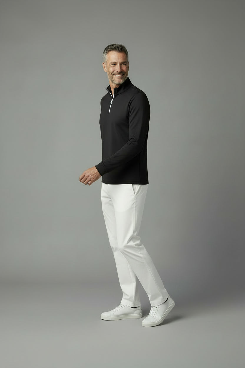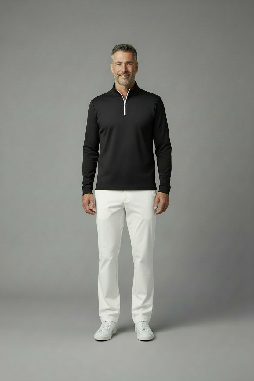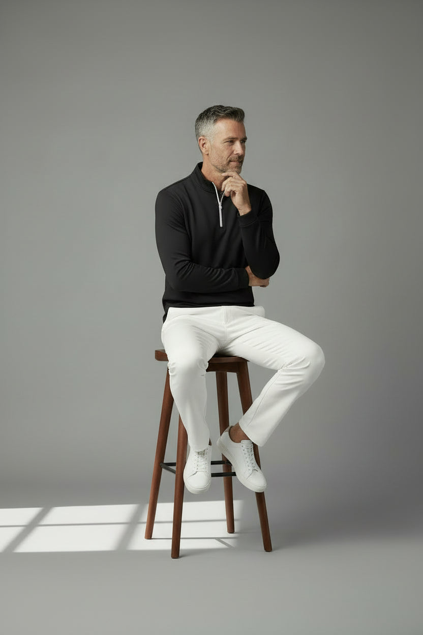 NEW DROP: The TUCCI Quarter-Zip Pullover is crafted from certified, ultra-soft, non-toxic Italian fabric for clean comfort and effortless style. Our funnel neck design allows for enhanced style and comfort with its relaxed fit around your neck when fully zipped. Designed for versatility, TUCCI moves seamlessly from the gym to casual wear to polished evenings. This medium weighted fabric is thermoregulated and will keep you warm in cooler weather and it will regulate your body temperature in warmer weather. BEST FOR: Pre/Post workouts, travel, business, lounging, lunch/brunch or dinner.